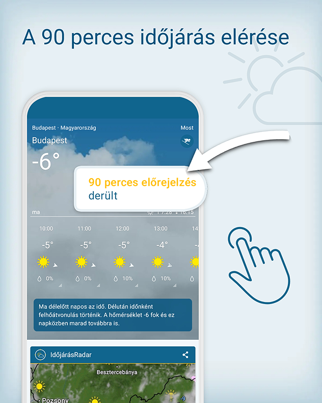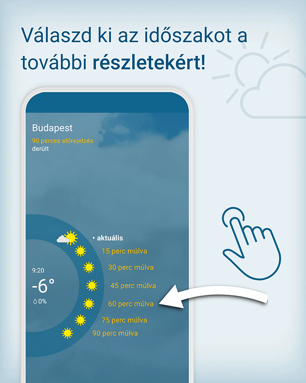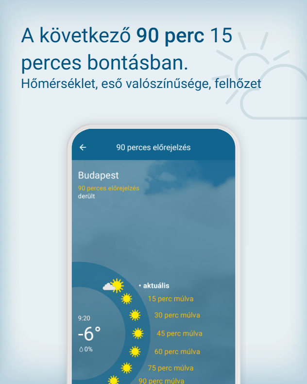 Szeretnéd 15 perces bontásban látni az időjárást? Pontosan ezt nyújtja részletes előrejelzésünk a következő 90 percre.