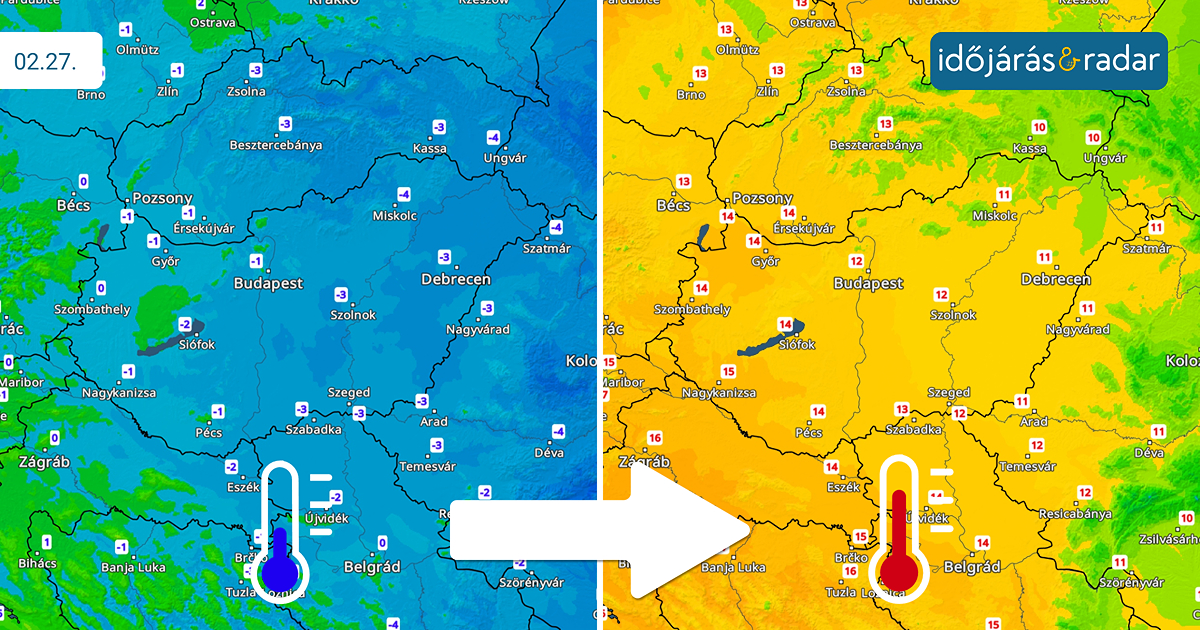 A tavasz közeledtével egyre erősödik a nappali felmelegedés mértéke, ugyanakkor ezzel szemben még csípősen indulnak a reggelek. Míg a kora reggeli órákban fagypont környékén van a hőmérséklet, a következő napokban 10°C fölé kúszik a hőmérő higanyszála.