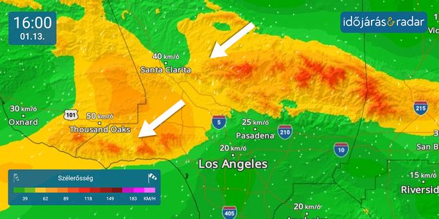 A 70 és 110 km/óra közötti széllökések és száraz levegő együttesen okozzák a veszélyes időjárási körülményeket. A SzélRadar szerint a Santa Ana széllökések északkelet felől érkeznek, a legerősebb lökések pedig a hegyekben fordulnak elő.