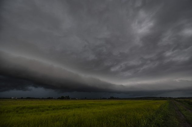 Sötét szürke felhőfal jellemzi a horizonton, és olyan, mint egy közeledő szökőár az égen – dinamikus, gyors, hatalmas.