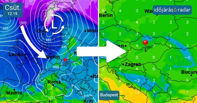 Csütörtökön hidegfront vonul át, amelynek áramlási rendszere sarkvidéki erdetű légtömegeket érkeztet Közép-Európa területeire. Több fokkal esik vissza a hőmérséklet és csapadékot is hoz magával.