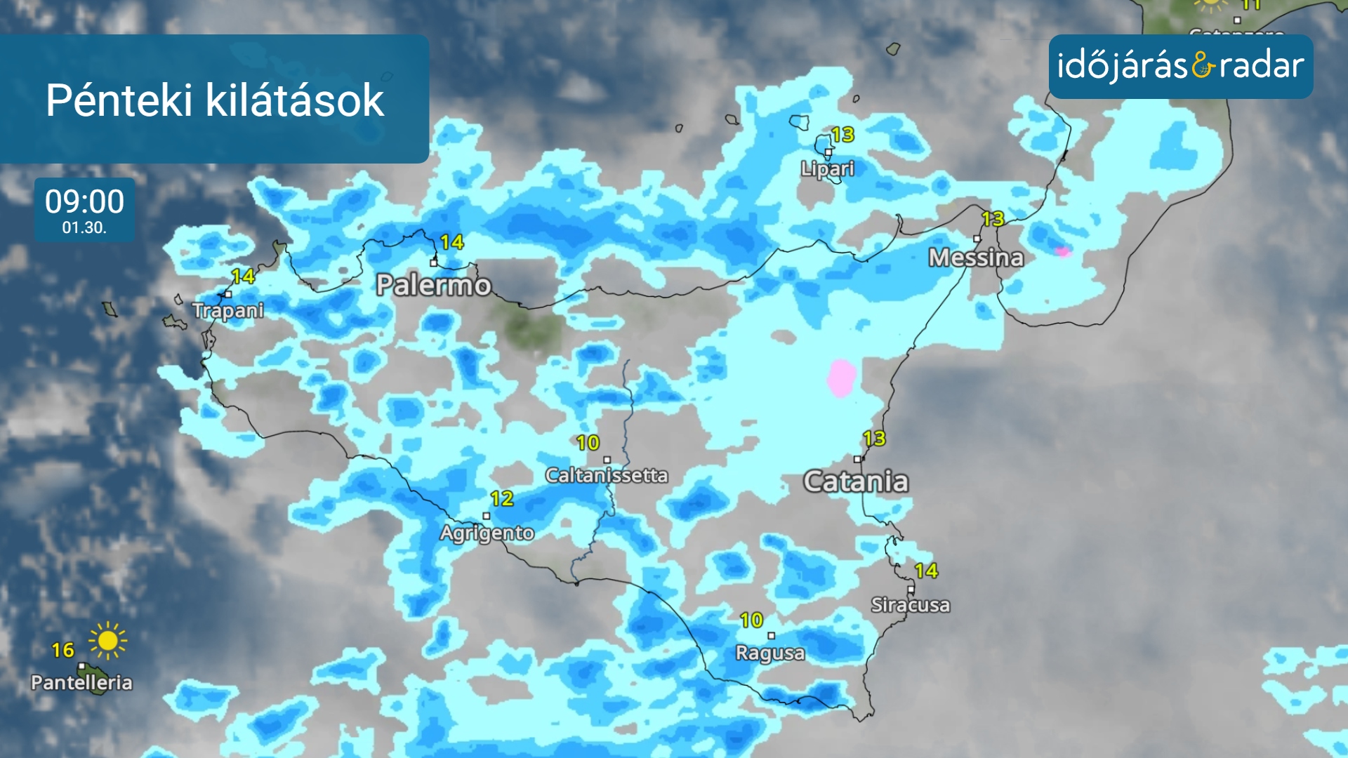 IdőjáráRadar: Erős esőzések vonulnak át Szicílián.