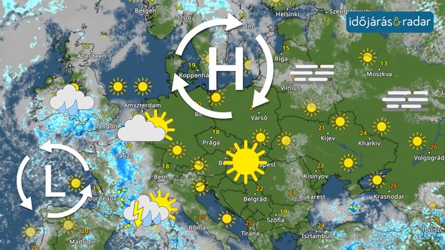 Észak- és Közép-Európa felett jelenleg magas, Dél-Európa felett pedig alacsony légnyomás uralkodik.