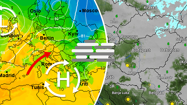 Időjárási térkép erős esőzésre figyelmeztető jelzéssel a nyugati Balkán és az Adriai-tenger partvidéke számára.