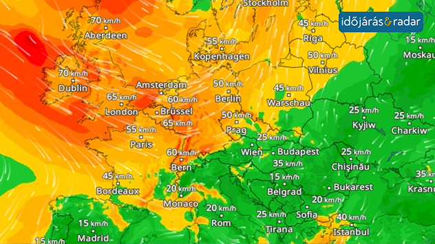 SzélRadar: Szerdán Európa nagy részén erős szél várható, helyenként viharos lökésekkel.