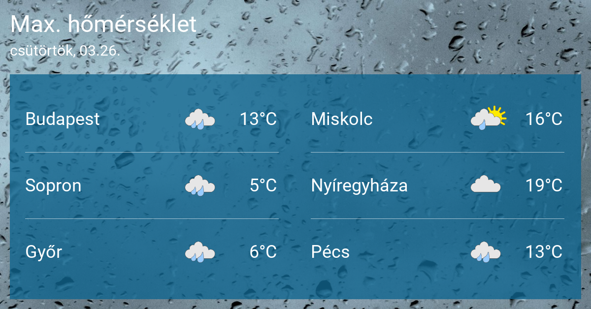 Hazánkban csütörtökön érkezik a markáns front. A Dunántúlon északnyugatira fordul a szél, amiből olykor viharos lökések is várhatóak. Az ország nyugati felén jelentős mennyiségű csapadékra van kilátás.