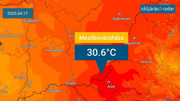 Csütörtök délután új napi melegrekord született! Mezőkovácsházán április 17-én 30.6°C-ig melegedett fel a levegő.