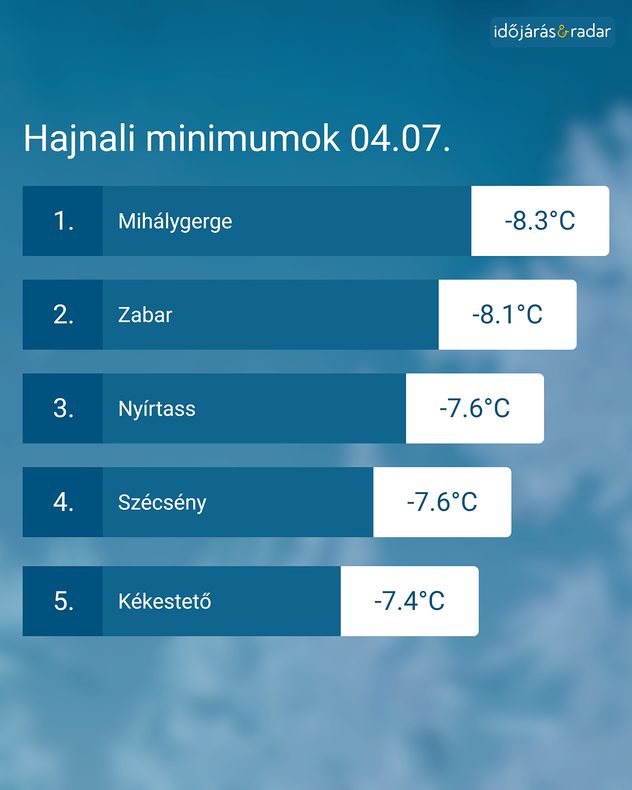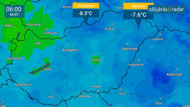 • A legalacsonyabb hőmérsékleti értékek az ország északkeleti völgyeiben voltak.