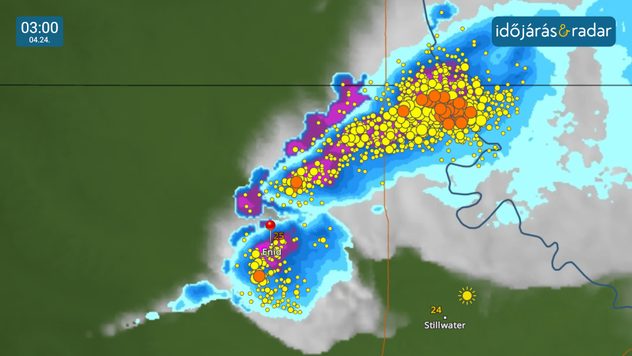 Az IdőjárásRadar (jobbra) azt az erős zivatart mutatja, amely a tornádót okozta.