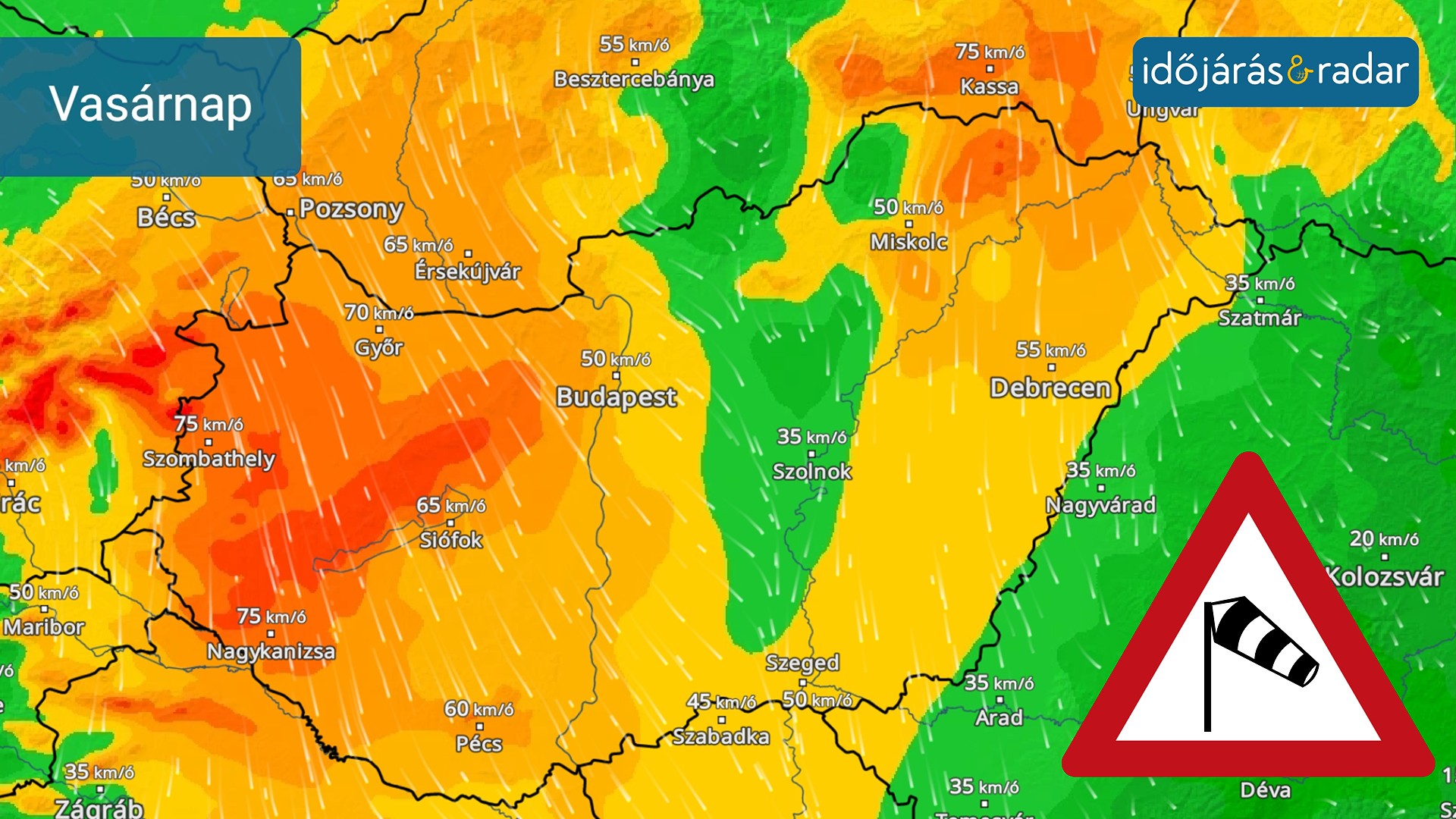 Vasárnap reggeltől többfelé erős, időnként viharos északi szél lesz a meghatározó. A viharos széllökések jelentősen befolyásolják szabadban a komfortérzetünket: a tényleges hőmérsékletnél hidegebbnek érezhetjük az időt.
