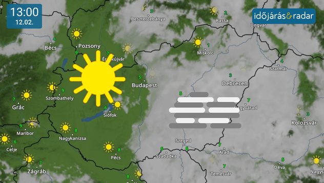 Míg a tartósan ködös, felhős régiókban, például Tiszaújváros és Polgár környékén fagypont körül alakul a hőmérséklet, addig az Észak-Dunántúlon, Győr környékén napos idő és 10°C-ot mérnek.