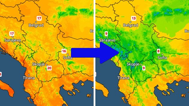 Hőmérséklet-csökkenés Délkelet-Európában